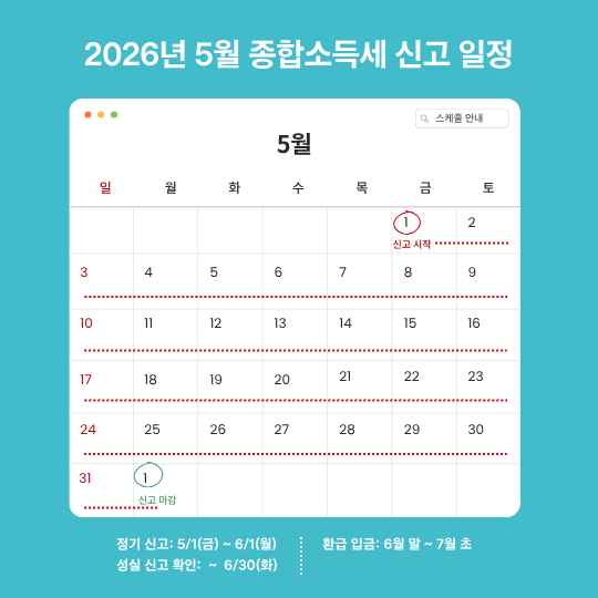 2026 종합소득세 신고 기간과 핵심 일정
